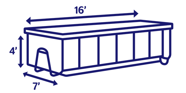 Our 16-yard dumpster is perfect for big cleanup jobs, including home renovations, roof tear-offs, and large garage or basement cleanouts. It holds approximately 6 pickup truck loads of material.